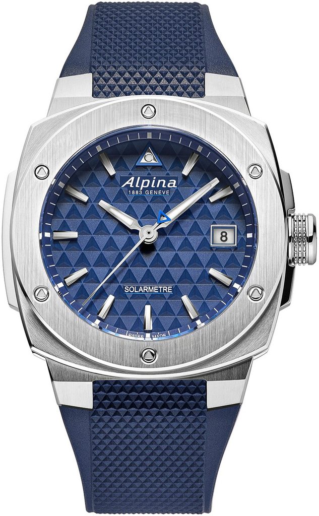 Cadranul inovator semi-transparent ascunde discret tehnologia solară și păstrează aspectul iconic Alpina. Indicii aplicați, mâinile luminescente și motivul triunghiular tipic garantează o lizibilitate perfectă și un stil distinctiv. Detaliile subtile albastre subliniază subtil maturitatea tehnologică a modelului.