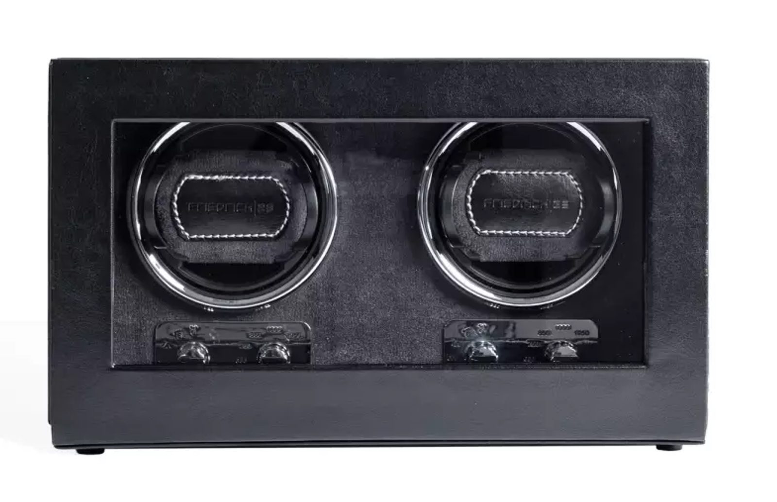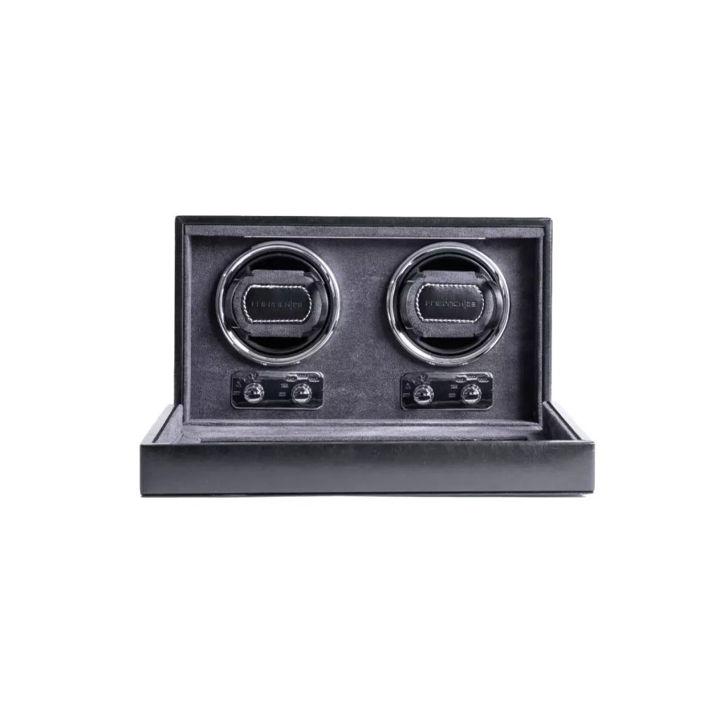 Friedrich Lederwaren Bond 29482-9 carcasă neagră pentru 2 ceasuri mecanice cu încărcare automată, care impresionează prin designul său clasic. Fabricat din material sintetic, interiorul este finisat în negru.