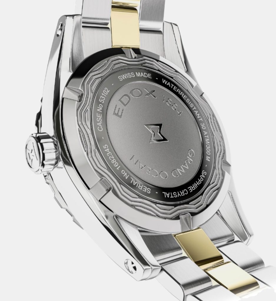 Mâinile și indicii sunt de culoare aurie, contrastând frumos cu cadranul deschis, care prezintă detalii ale valurilor, simbolizând legătura acestei serii de modele cu oceanele, mările și navigația. Atât mâinile, cât și micile puncte situate între indici și scala exterioară a cadranului sunt luminescente. Data este plasată lângă indexul de la ora "3". Înălțimea carcasei este de 9,8 mm, iar greutatea ceasului este de 90gr. Brățara are o închidere pliabilă de siguranță cu logo-ul Edox.