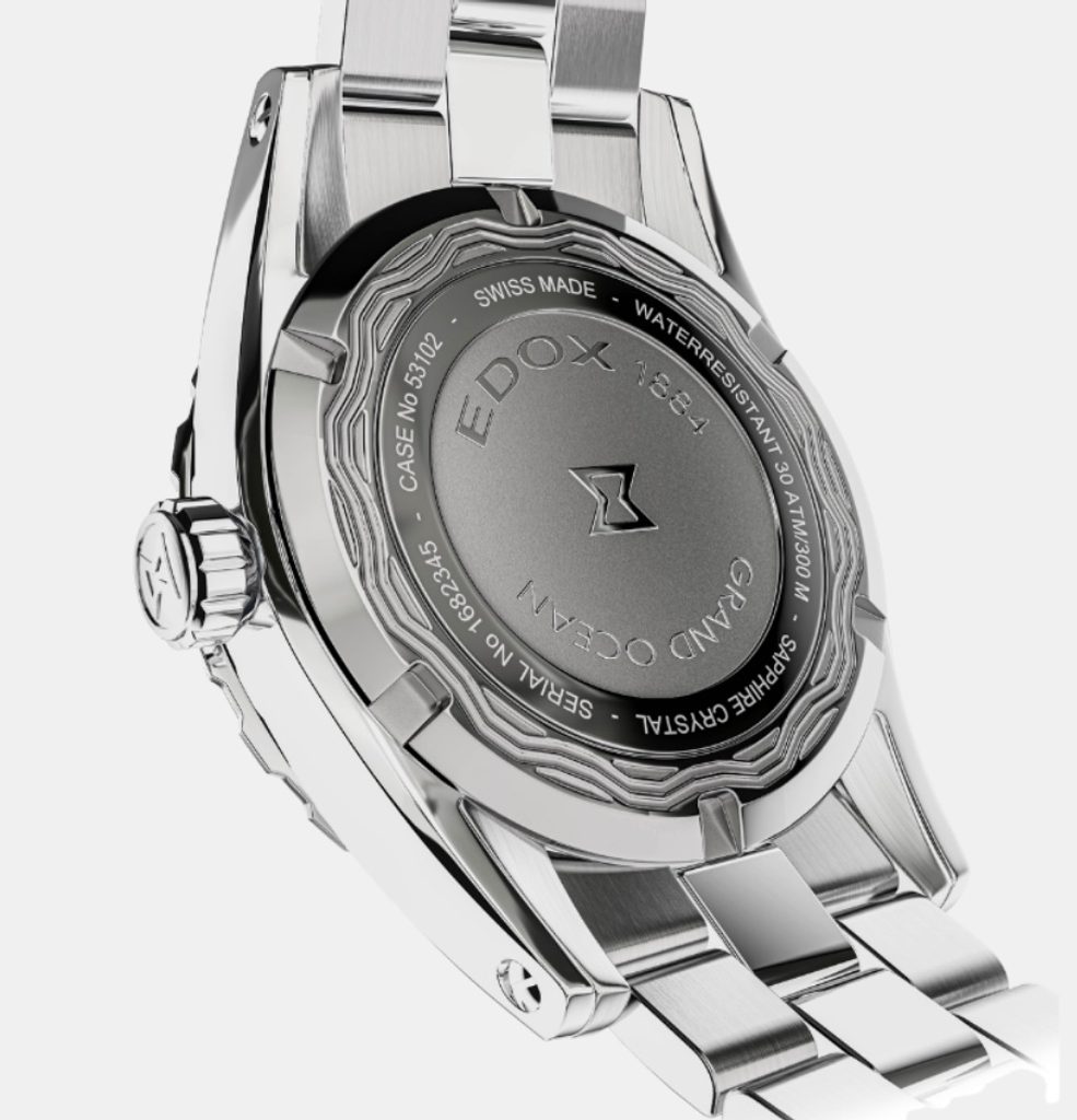 Mâinile și indicii sunt argintii, contrastând frumos cu cadranul albastru deschis, care prezintă detalii de valuri, simbolizând legătura acestei serii de modele cu oceanele, mările și yachtingul. Atât mâinile, cât și micile puncte situate între indici și scala exterioară a cadranului sunt luminescente. Data este plasată lângă indexul de la ora "3". Înălțimea carcasei este de 9,8 mm, iar greutatea ceasului este de 90gr. Brățara are o închidere pliabilă de siguranță cu logo-ul Edox.