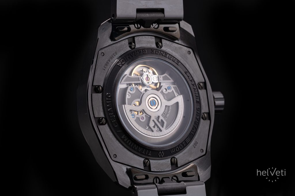 Carcasa este echipată cu o coroană înșurubată și cu sistemul patentat Case Suspension System, adăpostit într-o carcasă din titan. Funcția acestuia este de a absorbi șocurile, sporind în același timp plăcerea purtării prin ajustarea parțială a carcasei la încheietura mâinii pe măsură ce aceasta se mișcă. În ciuda acestei tehnologii, înălțimea carcasei este de numai 11,2 mm. Diametrul de 41 mm se potrivește majorității încheieturilor bărbaților. Rezistența la apă a ceasului este de 100 m (10 ATM), garantând posibilitatea utilizării universale.