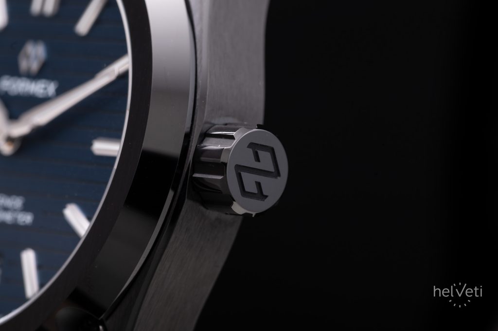 Formex Essence Ceramica COSC Blue 0336.4.6631.410 este o abordare modernă a unui ceas sportiv și elegant, cu accent pe materialele de calitate superioară și pe manopera de precizie. La prima vedere, acesta impresionează prin designul său complet ceramic și cadranul iconic cu frezare orizontală, care creează un efect distinctiv de adâncime și un efect interesant în lumină. Estetic și tehnic, acesta este un model care împinge limitele orologeriei tradiționale. Cu detaliile sale elaborate, Formex Essence Ceramica confirmă statutul înalt justificat al acestui brand elvețian.