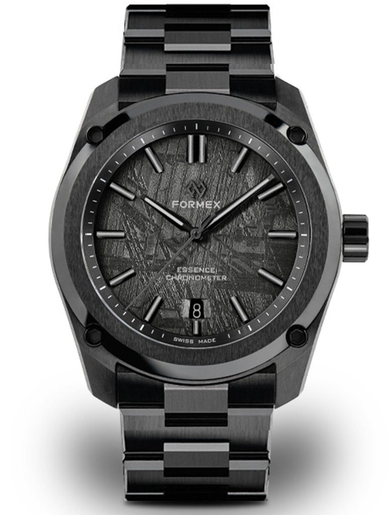 Formex Essence Ceramica Dark Matter extinde gama de ediții speciale care fac cadranul lor unic. În acest caz, cadranul din meteorit și-a dobândit culoarea grafit metalic prin electroplacare cu nichel negru.