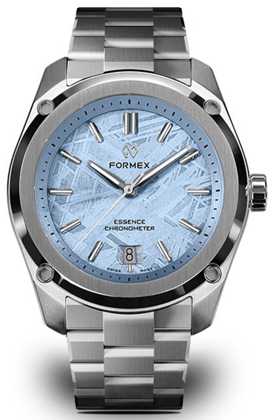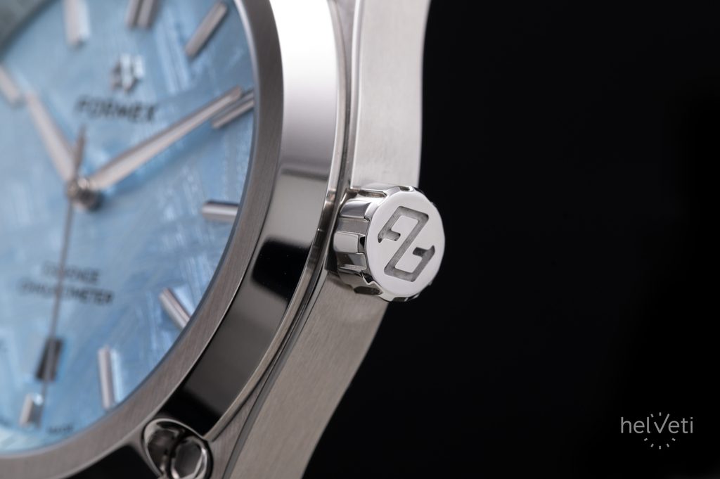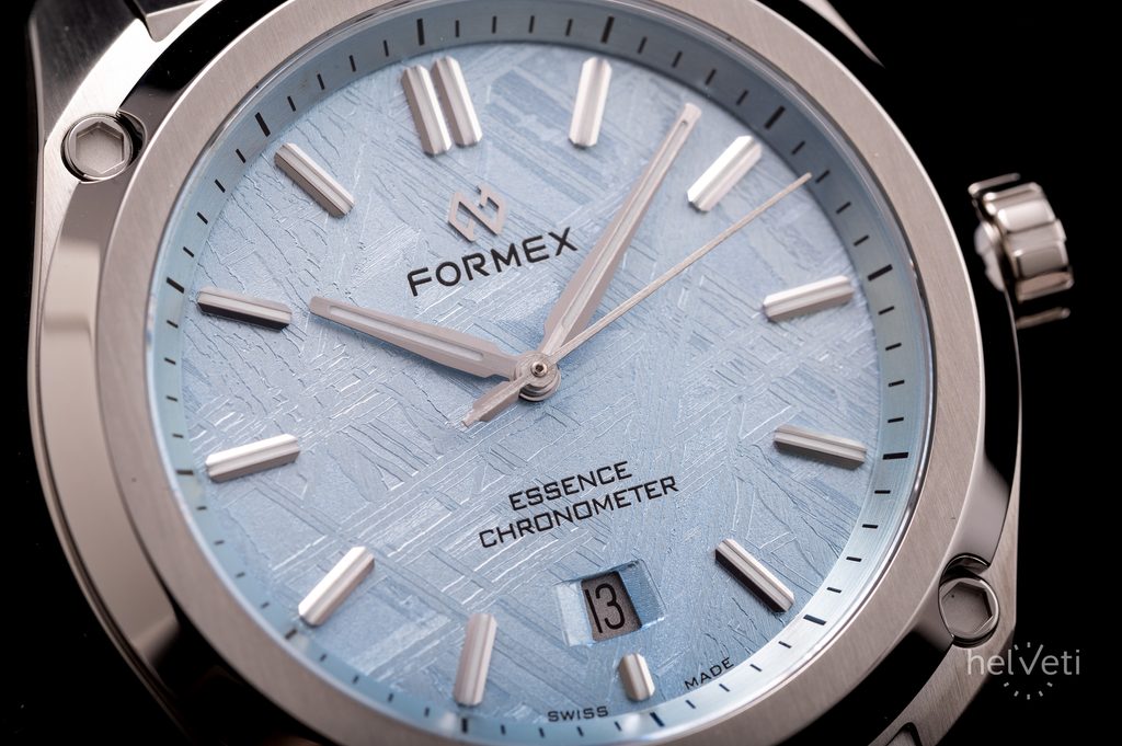 Formex Essence FortyThree Space Glacier extinde oferta edițiilor speciale, care se remarcă prin cadranele lor unice. În acest caz, cadranul din meteorit este argintat cu 98% argint. Pe suprafața meteoritului a fost aplicat un strat de 98% argint prin galvanizare, urmat de aplicarea manuală a șase straturi de lac transparent zapon teintée. Acesta este un lac celulozic transparent, cu o nuanță subtilă de albastru.