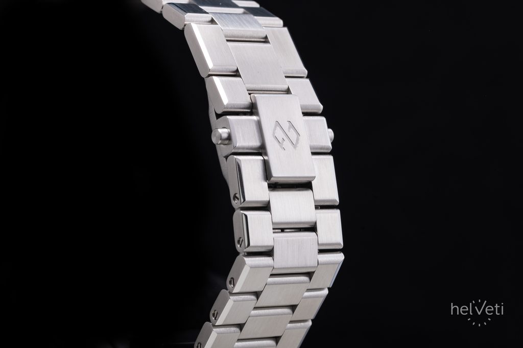 Carcasa este completată de o brățară din oțel, cu o închidere tip fluture și posibilitate de extindere cu 4 mm.