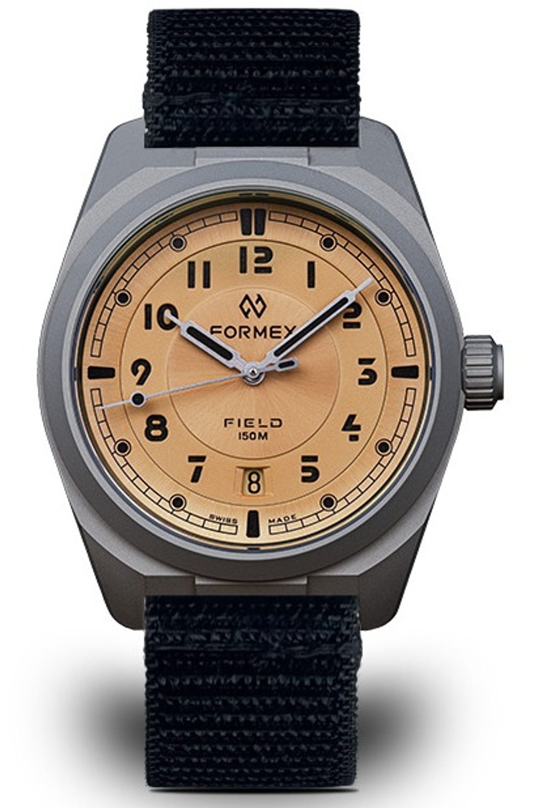 Trăsăturile clasice ale ceasului Formex Field Automatic Gen 2 Golden Honey de inspirație militară includ mâinile și cifrele tăiate în formă de seringă distinctive și ușor de citit la pozițiile orelor, coroana ușor de manevrat, rezistența mai mare la apă și carcasa înșurubată. Cadranul perfect transparent cu două straturi și centru tăiat este protejat de un cristal de safir cu strat intern antireflex și rezistență ridicată la zgârieturi. Lizibilitatea îmbunătățită în condiții de lumină scăzută este asigurată de luminescența (Super-LumiNova® Grade A) de pe mâini, cifre și indici. Cifrele încastrate și indicii orelor, împreună cu inelul central și exterior ridicat, conferă cadranului o adâncime vizibilă. Toate acestea sunt accentuate de indicatorul de dată proiectat cu sensibilitate din poziția orei 6, cu o coroană în culoarea cadranului. Ceea ce veți aprecia cel mai mult la acest ceas este versatilitatea sa; setul său de caracteristici îl face ideal pentru utilizarea în sport, în apă și pentru utilizarea zilnică.