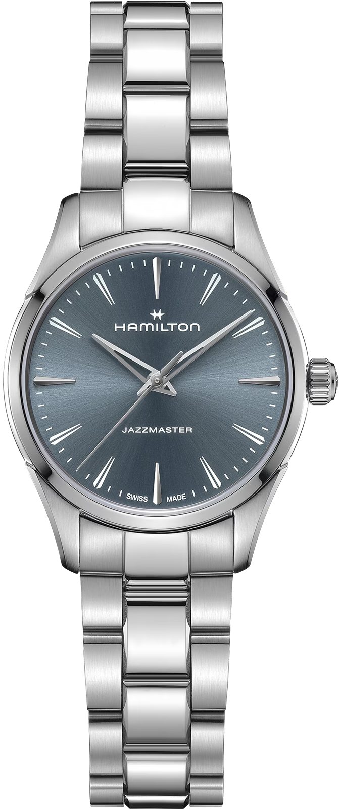 Atemporal și rafinat, modelul Jazzmaster Quartz 32 mm are un cadran albastru închis cu un finisaj Sunburst, completat de mâini scheletate în stil Dauphine pentru o abordare modernă a designului tradițional. Carcasa ultra-subțire se combină cu detaliile tăiate cu precizie și lustruite pentru a crea o siluetă elegantă și subțire. Un ceas social clasic conceput pentru un rafinament natural.