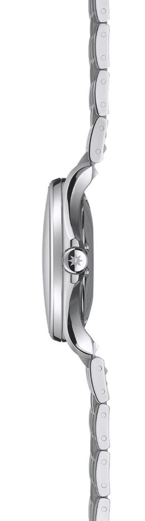 Carcasa acestui model este fabricată din oțel inoxidabil, la fel ca și brățara sa. Cadranul clar esteprotejat de un cristal de safir, care este extrem de rezistent la zgârieturi. Stratul antireflex garantează apoi o lizibilitate excelentă chiar și în lumina directă a soarelui. Rezistența la apă este de 100 de metri (10 ATM), astfel încât ceasul poate rezista activităților în apă, cum ar fi înotul.