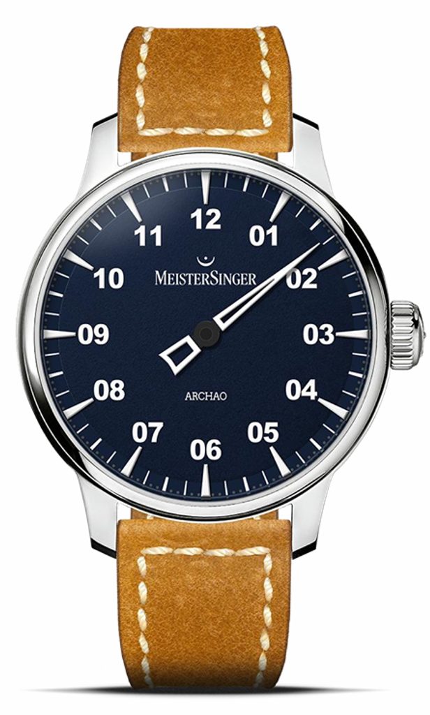 Caracteristica principală a modelului Archao este cadranul albastru cu indici aplicați extrem de distinctivi ai orelor și cifre cu două cifre, care, la fel ca mâna masivă, prezintă o luminescență aparte. Acestea absorb lumina în timpul zilei pentru a o elibera după lăsarea întunericului sub forma unei luminozități intense, de lungă durată. Mâna în formă de ac indică apoi intuitiv ora în stilul tipic MeisterSinger - calm, clar și fără grabă. Totul arată echilibrat și modern, cu o notă de sportivitate - ca un ceas care trăiește zi și noapte.