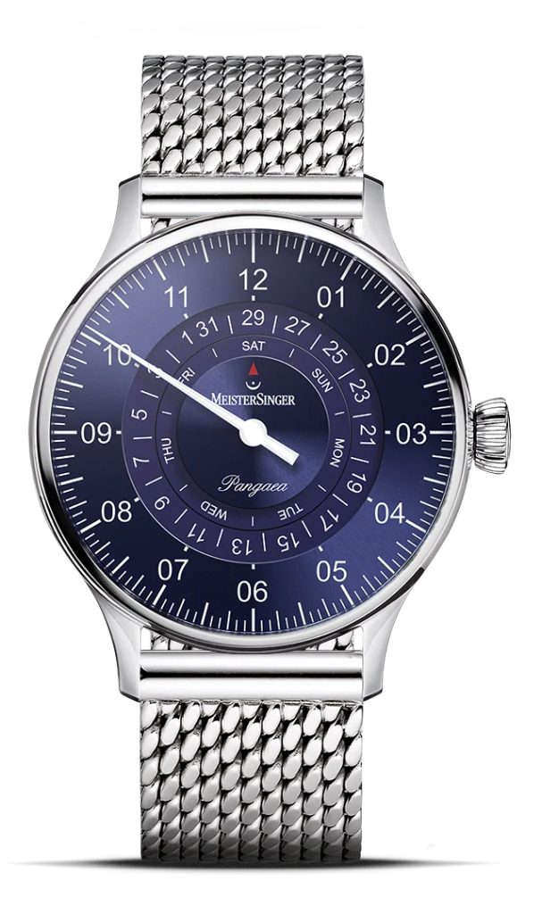 Ceasul MeisterSinger Pangaea Day Date PDD908 face parte din seria Classic Plus și oferă o afișare neobișnuită, dar interesantă a timpului, utilizând un singur ac. Caracteristica principală a acestui model este indicatorul de zi și dată, afișat prin discuri în centrul cadranului. Iubitorii de orologerie de calitate și soluții neconvenționale vor fi cu siguranță încântați.