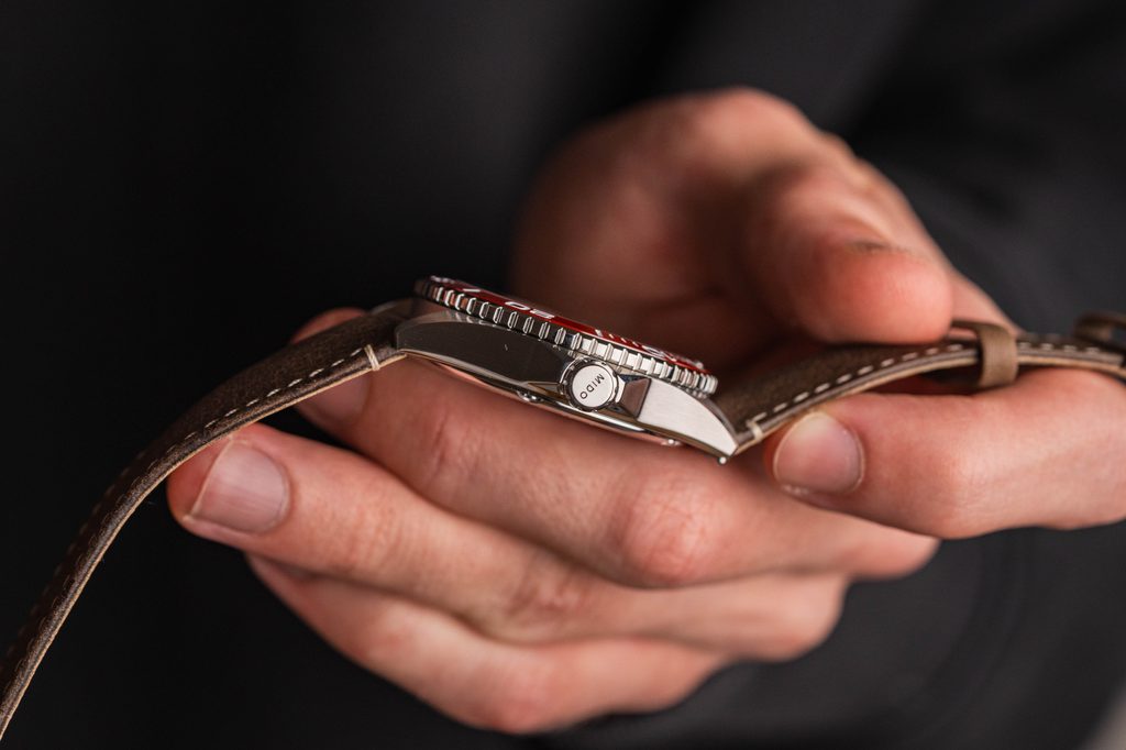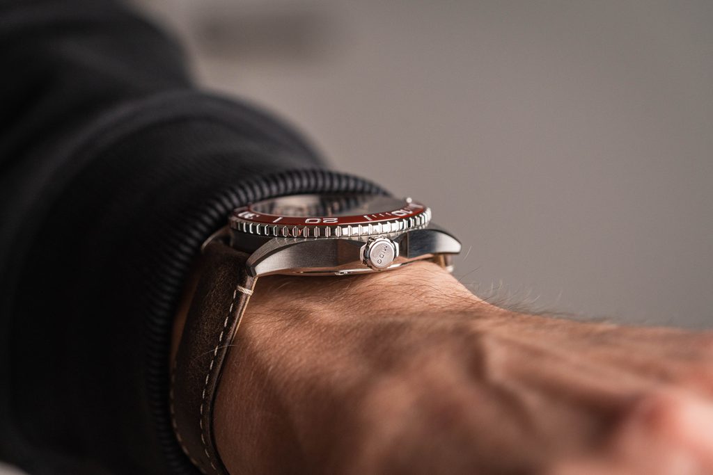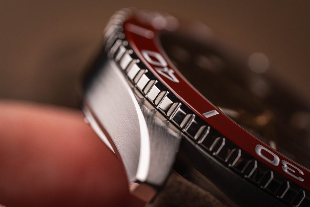 Cadranul clar este protejat de o sticlă din safir, care garantează o rezistență maximă la zgârieturi. Stratul antireflexiv pe ambele fețe oferă o lizibilitate maximă chiar și în lumina puternică a soarelui. Rezistența la apă a acestui model este de 200 m (20 Bar), ceea ce îl face potrivit pentru activități în apă, cum ar fi înotul sau scufundările. Rezistența la apă este susținută de o coroană șurubabilă.