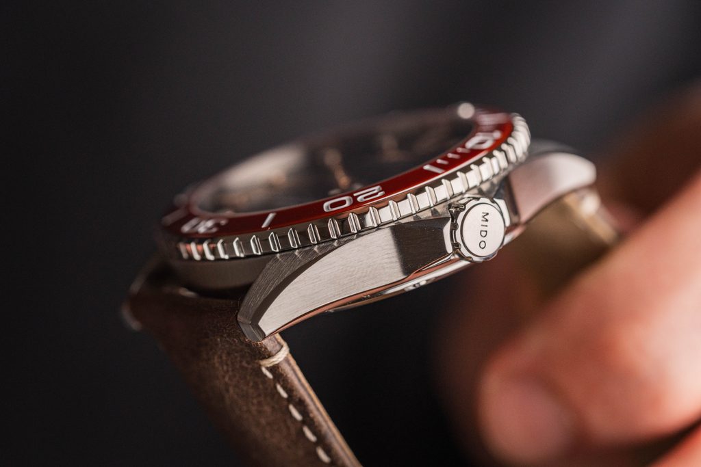 Ceasul Mido M042.430.16.051.00 are o carcasă realizată din oțel inoxidabil 316L și este completat de o curea din piele. În interiorul carcasei funcționează mecanismul mecanic elvețian Caliber 80 (bazat pe ETA C07.621) cu întoarcere automată. Acesta funcționează la o frecvență de 21600 vibrații pe oră, are 25 de rubine și oferă o rezervă de funcționare extinsă de 80 de ore. La poziția orei 3 se află un indicator de dată și zi a săptămânii. Pentru măsurarea intervalelor de timp, se poate utiliza rama ceramică unidirecțională pentru scufundări.