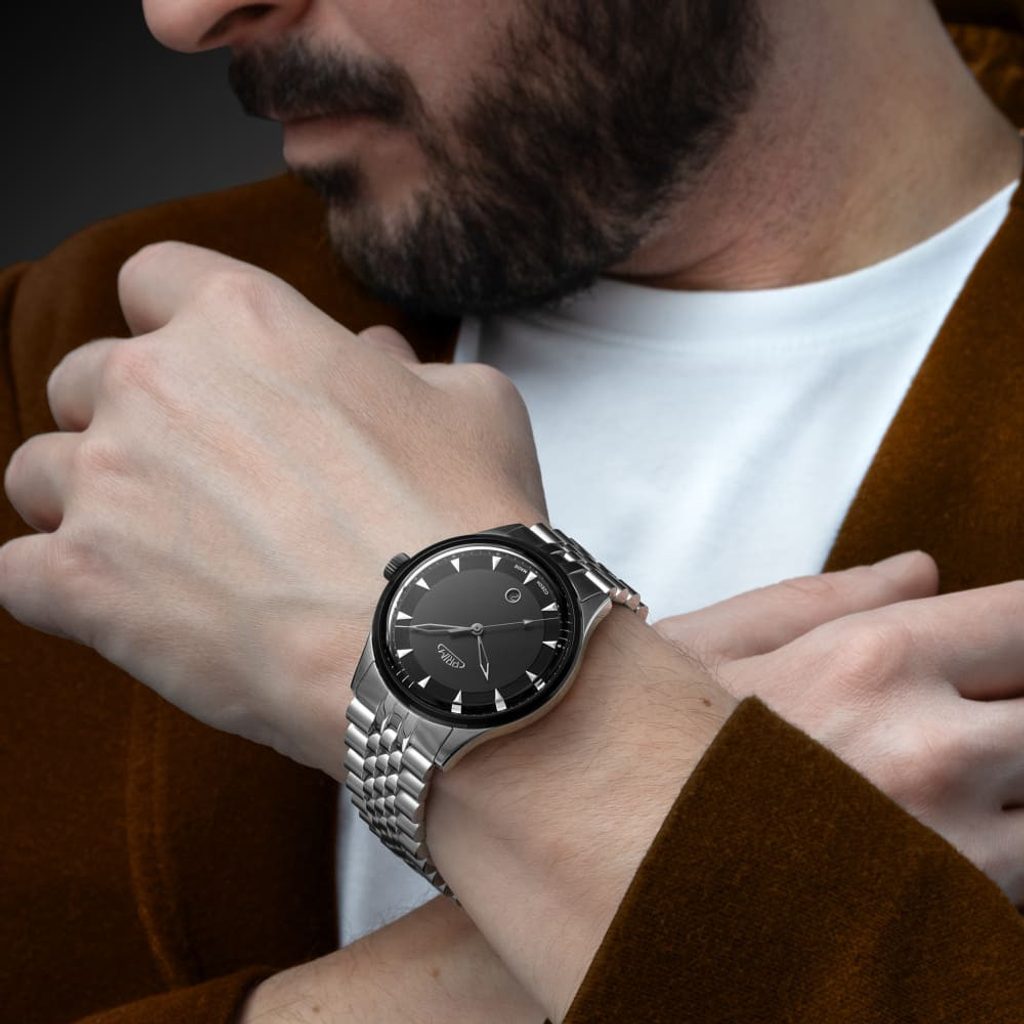 Cristalul convex din safir contribuie la designul general și la lizibilitatea cadranului. Designul său elimină în mod inteligent strălucirea și evidențiază ceea ce este important. Optica joacă un rol esențial atunci când este utilizată această sticlă și, datorită ei, vă oferim o lizibilitate excelentă și un confort ridicat în acest model.