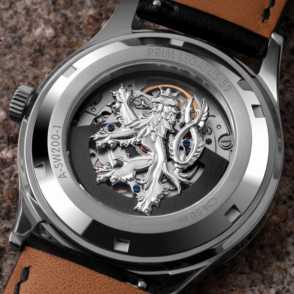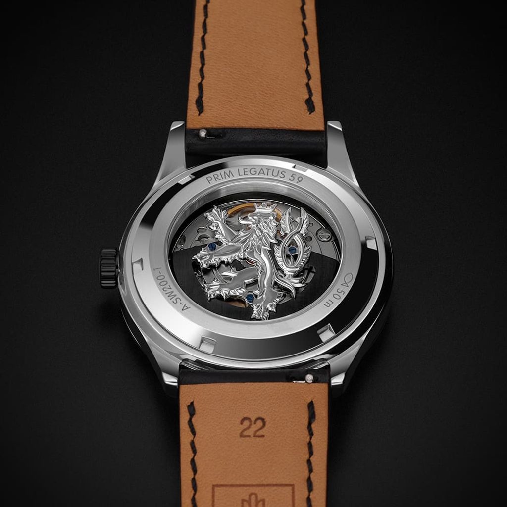 În interiorul ceasului se află un calibru elvețian Sellita SW200-1 de înaltă calitate și fiabilitate, iar rotorul său este decorat cu un leu ceh. Puteți admira munca sa fină și precisă prin capacul transparent.
