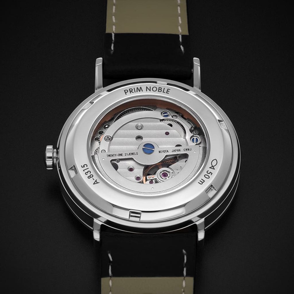 În interiorul ceasului funcționează o mișcare japoneză Miyota 8315 de înaltă calitate și fiabilă, cu înfășurare automată. Aceasta funcționează la o frecvență de 21.600 de semifrecvențe pe oră, are 21 de bijuterii și o rezervă de putere de 42 de ore. Modelul are, de asemenea, o funcție de dată la îndemână în poziția orei 3.