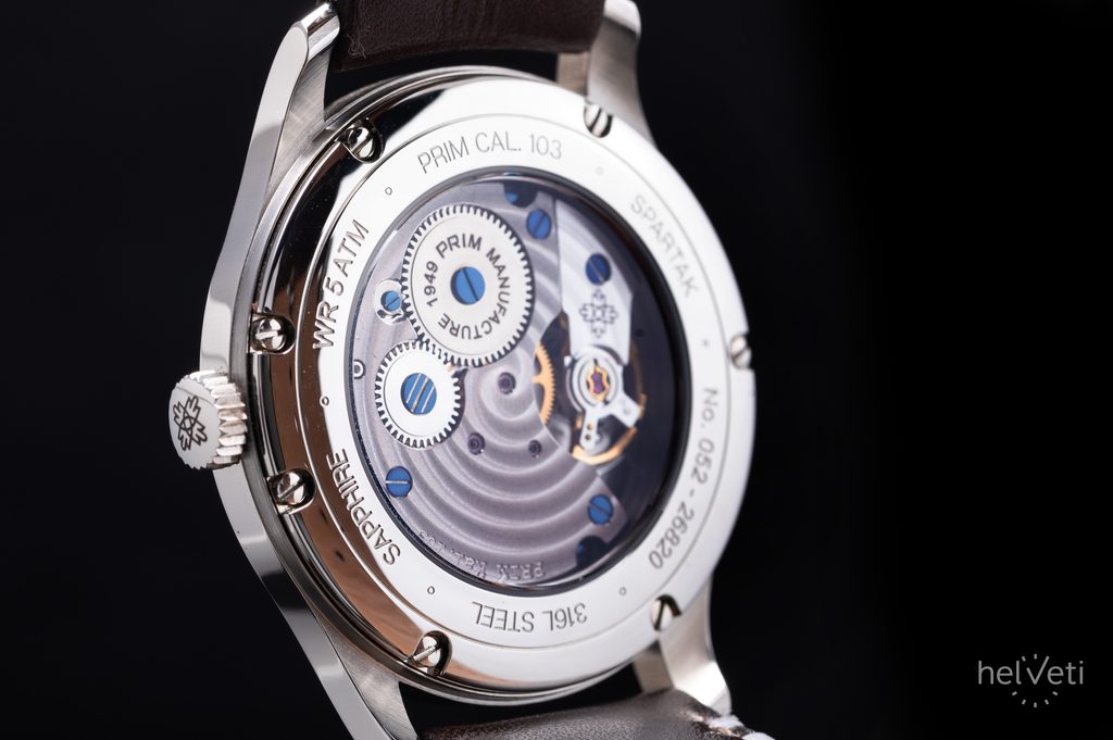 Ceasul PRIM Spartak 39 103-009-483-00-1 este un exemplu perfect de meșteșug orologer onest, care renunță la ornamente superflue și la elemente decorative fără o semnificație mai profundă. Carcasa noului model respectă proporțiile originale, dar dimensiunea este adaptată la tendințele contemporane. Utilizarea unei mișcări de manufactură a făcut posibilă păstrarea lejerității și eleganței carcasei. Acest lucru face modelul potrivit nu numai pentru bărbați, ci și pentru femei.