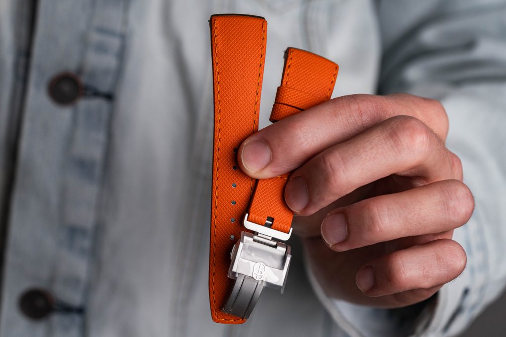 Carcasa cu diametrul de 43,2 mm și înălțimea de 14,8 mm este completată de o brățară integrată sofisticată din oțel 904L. Aceasta este finisată cu o închidere pliabilă cu PrecisionFit - un sistem ascuns de microreglare cu posibilitatea de a regla fin dimensiunea brățării pentru un confort maxim pe încheietura mâinii. Datorită sistemului de eliberare rapidă SwapEasy, brățara poate fi schimbată cu ușurință cu o curea alternativă din cauciuc portocaliu sau piele de aligator albastră, pe care o puteți alege la achiziționarea ceasului și care este astfel inclusă, precum și cu o carcasă practică de călătorie din piele.