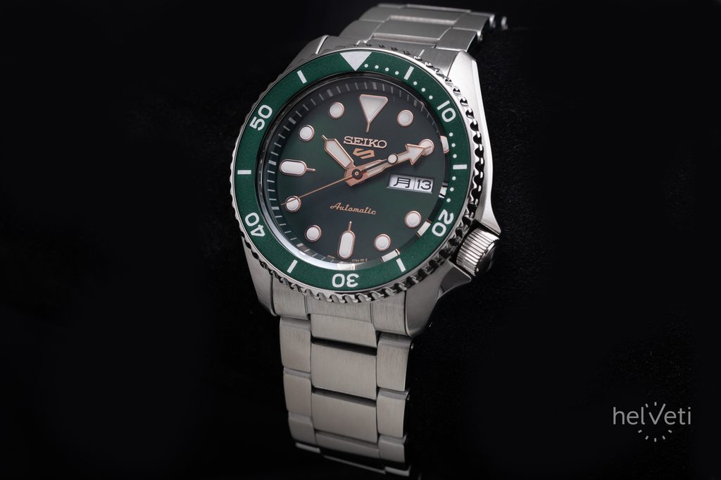 Ceasul Seiko 5 Sports SRPD63K1 este o noutate din 2019, aparținând legendarei serii de modele Seiko 5. Proprietarul va fi atras de cadranul verde închis, clar, cu finisaj sunburst, de acele pronunțate și indicii reliefați, precum și de coroana poziționată la ora 4.