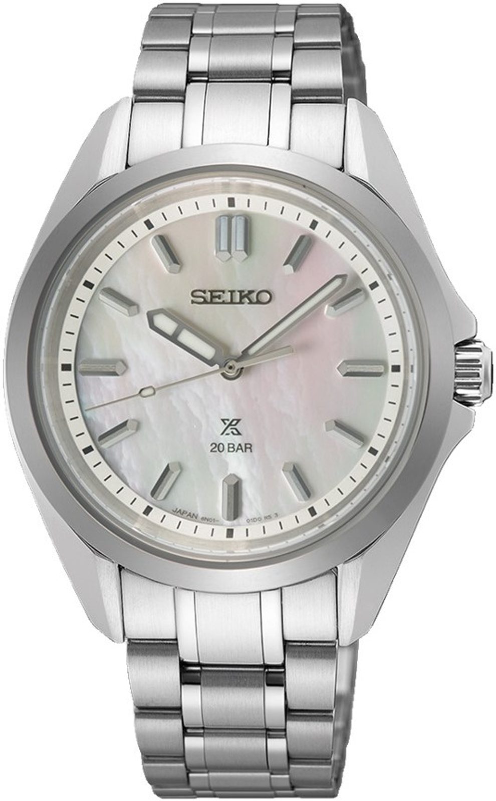 O lizibilitate mai bună în condiții de lumină redusă este asigurată de aplicarea luminescenței pe ace și indici. Ceasul este acționat de un mecanism cu cuarț fiabil Seiko 6N01. Rezistența la apă a ceasului este 200 m - astfel, nu se teme de înot sau de sporturi acvatice. Diametrul carcasei este ideal pentru o încheietură de damă, 34 mm.