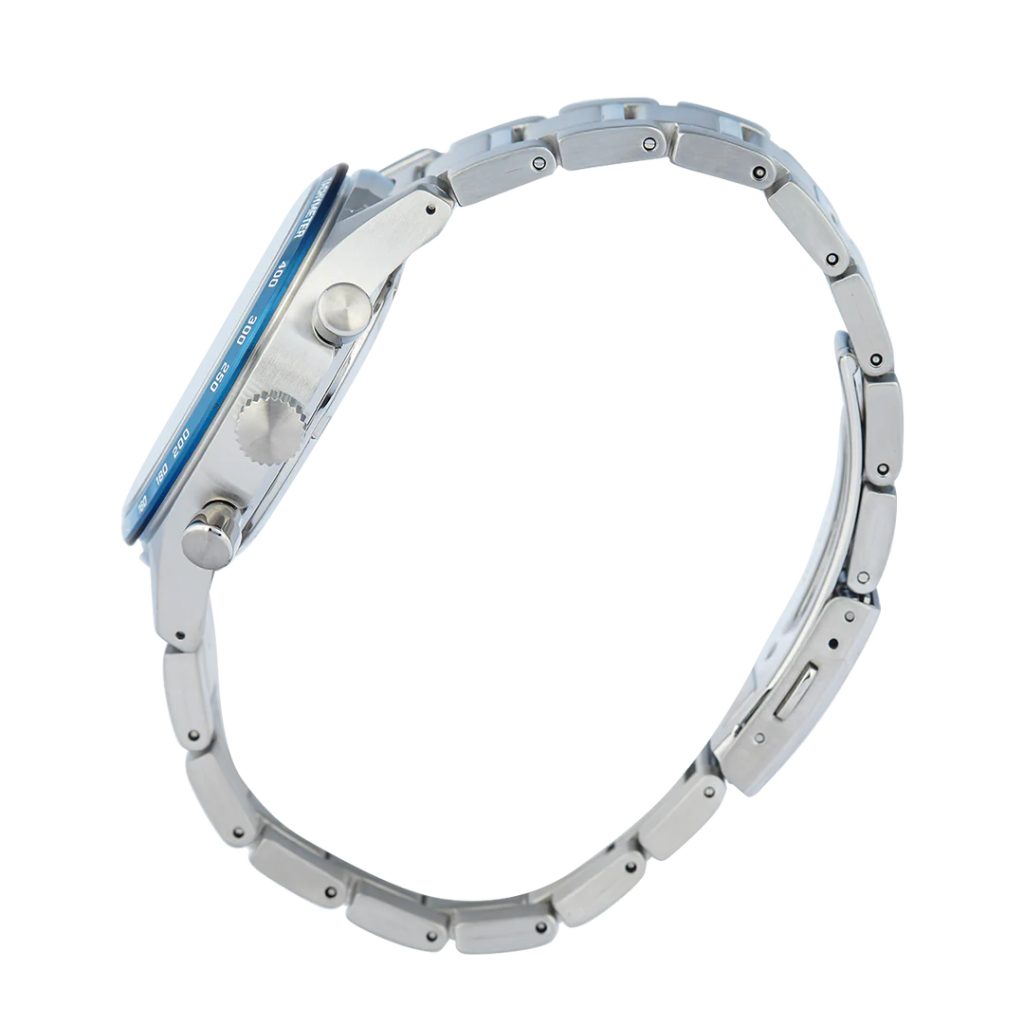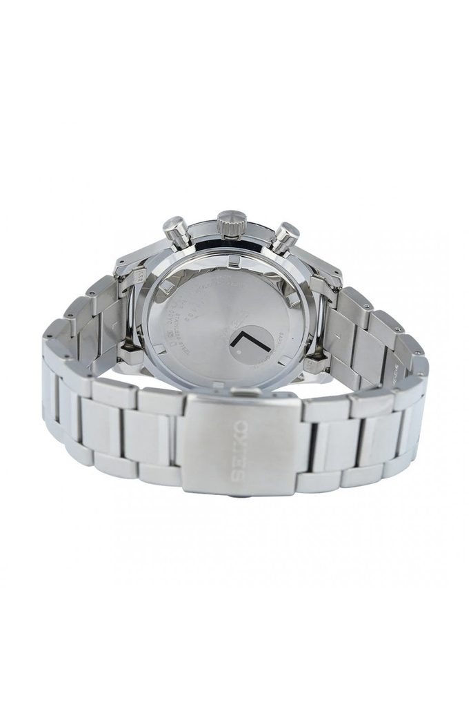 Ceasul Seiko SSB445P1 este acționat de un mecanism cu cuarț cu funcție de cronograf, căruia îi aparține contorul de minute la poziția orei nouă. Cronograful poate fi controlat cu butoanele laterale - cel superior pornește și oprește cronograful, cel inferior resetează valorile măsurate. La poziția orei trei se află afișajul de 24 de ore. Un element distinctiv al ceasului Seiko SSB445P1 este cadranul albastru cu textura sa pronunțată. Acele bine lizibile sunt prevăzute cu un strat de material luminos, care facilitează lizibilitatea în condiții de lumină redusă. Ceasul are un aspect dinamic și sportiv. Cadranul este protejat de sticlă din safir. Carcasa din oțel este completată de o brățară din același material. Rezistența la apă a acestui model este 100 m, astfel ceasul suportă înotul la suprafață și dușul. Nu lipsește nici indicatorul de dată la poziția dintre orele 4 și 5. Diametrul carcasei ceasului este 43 mm.