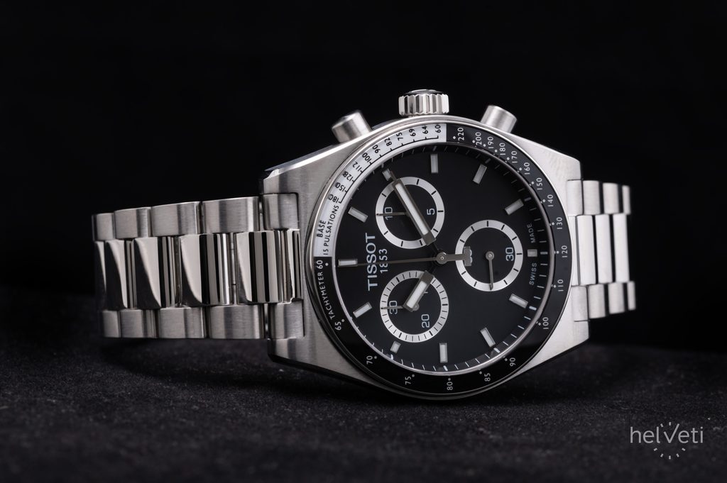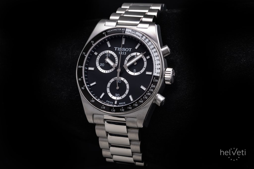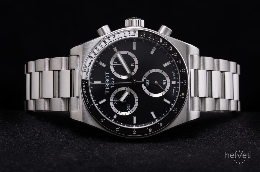 Cadranul de culoare neagră include un secundar decalat la poziția orei șase. Alte două subcadrane sunt dedicate funcției de cronograf: la poziția orei două se află contorul pentru zecimi de secundă, iar la poziția orei zece, contorul pentru minute. Pe ramă se află o scală tachimetrică, utilă pentru măsurarea vitezei pe un kilometru. Atât acele, cât și indicii sunt acoperiți cu un strat luminos Super-LumiNova, care asigură lizibilitatea în condiții de lumină scăzută.