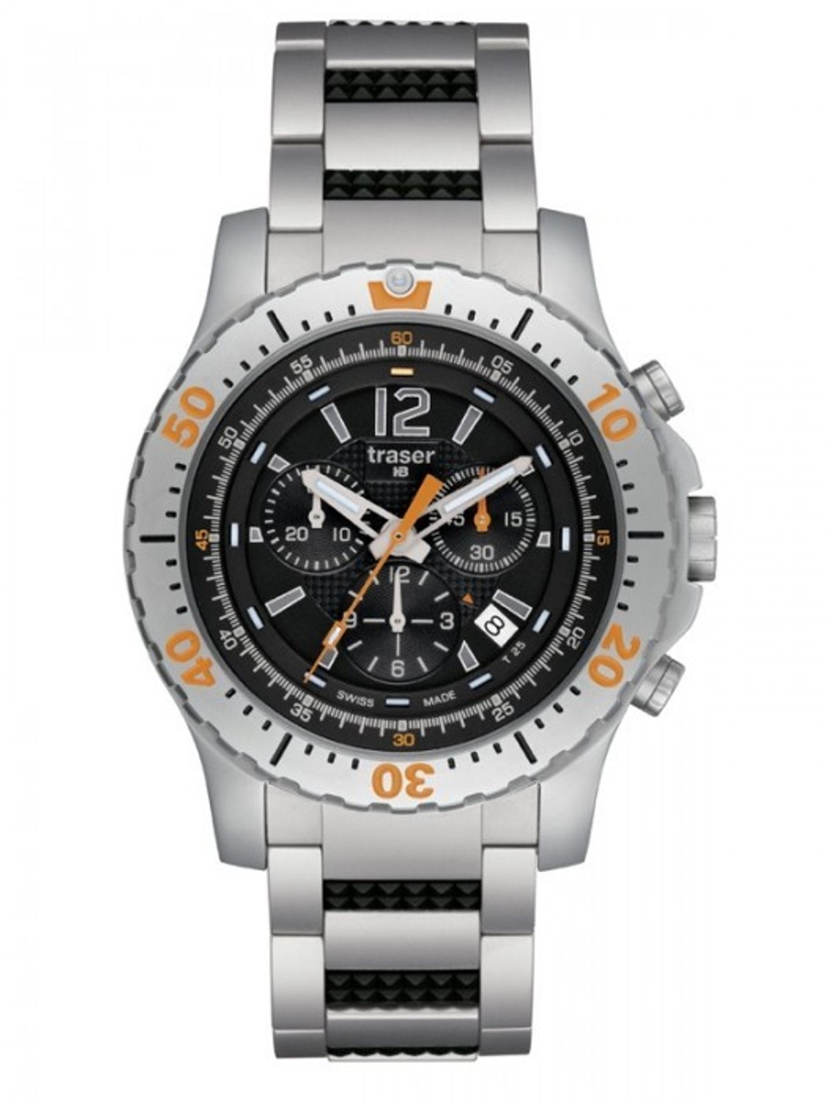 Hodinky P 6602 Extreme Sport Chronograph přidávají k extrémně pevnému plášti navíc ještě stopky. Vnější pouzdro z matné oceli, vnitřní pouzdro z leštěné oceli, vysoká vodotěsnost a safírové sklíčko zajistí jejich provoz v jakémkoliv prostředí. Přidáme-li ještě speciální technologii permanentního osvětlení trigalight a řemínek s bezpečnostní sponou, tak máme jasného favorita pro všechny sportovní nadšence - Traser P6602. Na výběr jsou tři druhy řemínků: oranžový silikon, černý silikon a příplatková ocel.