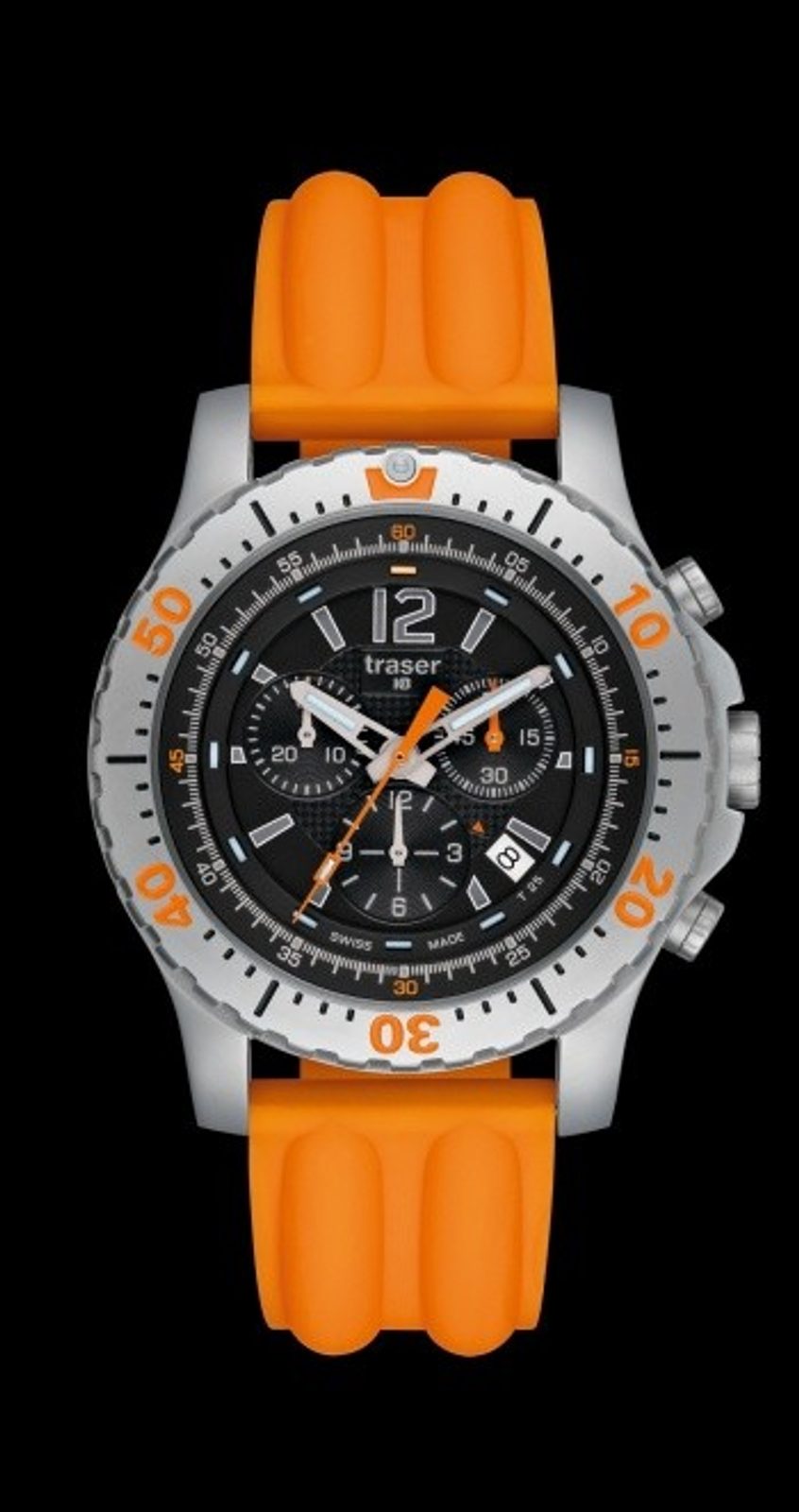 Hodinky P 6602 Extreme Sport Chronograph přidávají k extrémně pevnému plášti navíc ještě stopky. Vnější pouzdro z matné oceli, vnitřní pouzdro z leštěné oceli, vysoká vodotěsnost a safírové sklíčko zajistí jejich provoz v jakémkoliv prostředí. Přidáme-li ještě speciální technologii permanentního osvětlení trigalight a řemínek s bezpečnostní sponou, tak máme jasného favorita pro všechny sportovní nadšence - Traser P6602. Na výběr jsou tři druhy řemínků: oranžový silikon, černý silikon a příplatková ocel.