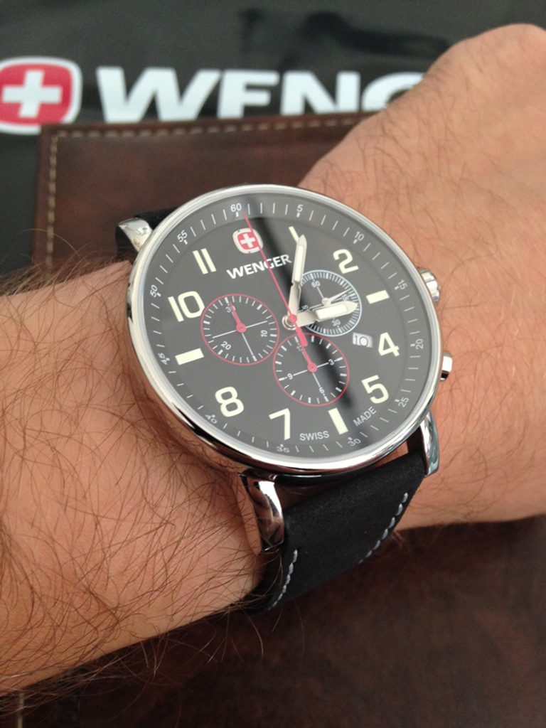 Model Wenger Attitude Chrono 01.0343.102, navazuje na model Wenger Commando Chrono 01.1243.104. Liší se posunutím loga Wenger níže a přidáním číslice 12 na černý ciferník hodinek.