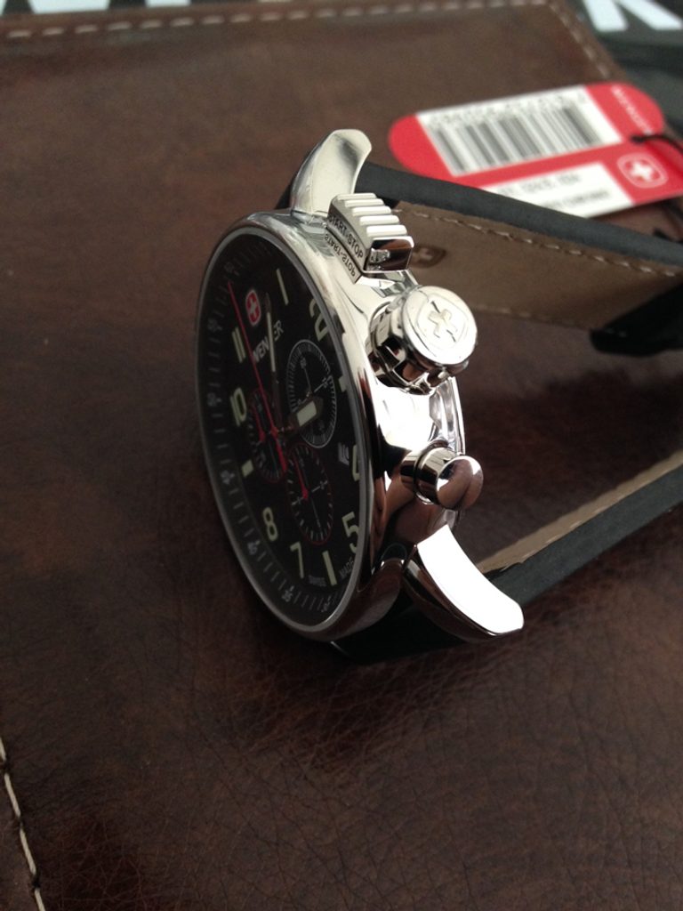 Hodinky spojuje velké leštěné ocelové pouzdro s tlačítky stopek v jeho pravé části. Horní tlačítko má hranatý tvar s nápisem start-stop vycházející z designu klasických stopek pro lepší orientaci při měření času. Výhodou je nevypouklé minerální sklíčko se safírovou úpravou a kvalitní 4mm tlustý kožený řemínek. Velký přehledný ciferník má po obvodu dobře čitelné luminiscentní indexy. V jeho středu se nachází tři malé ciferníčky. Dva pro potřeby stopek a pravý pro vteřinovou ručičku.
