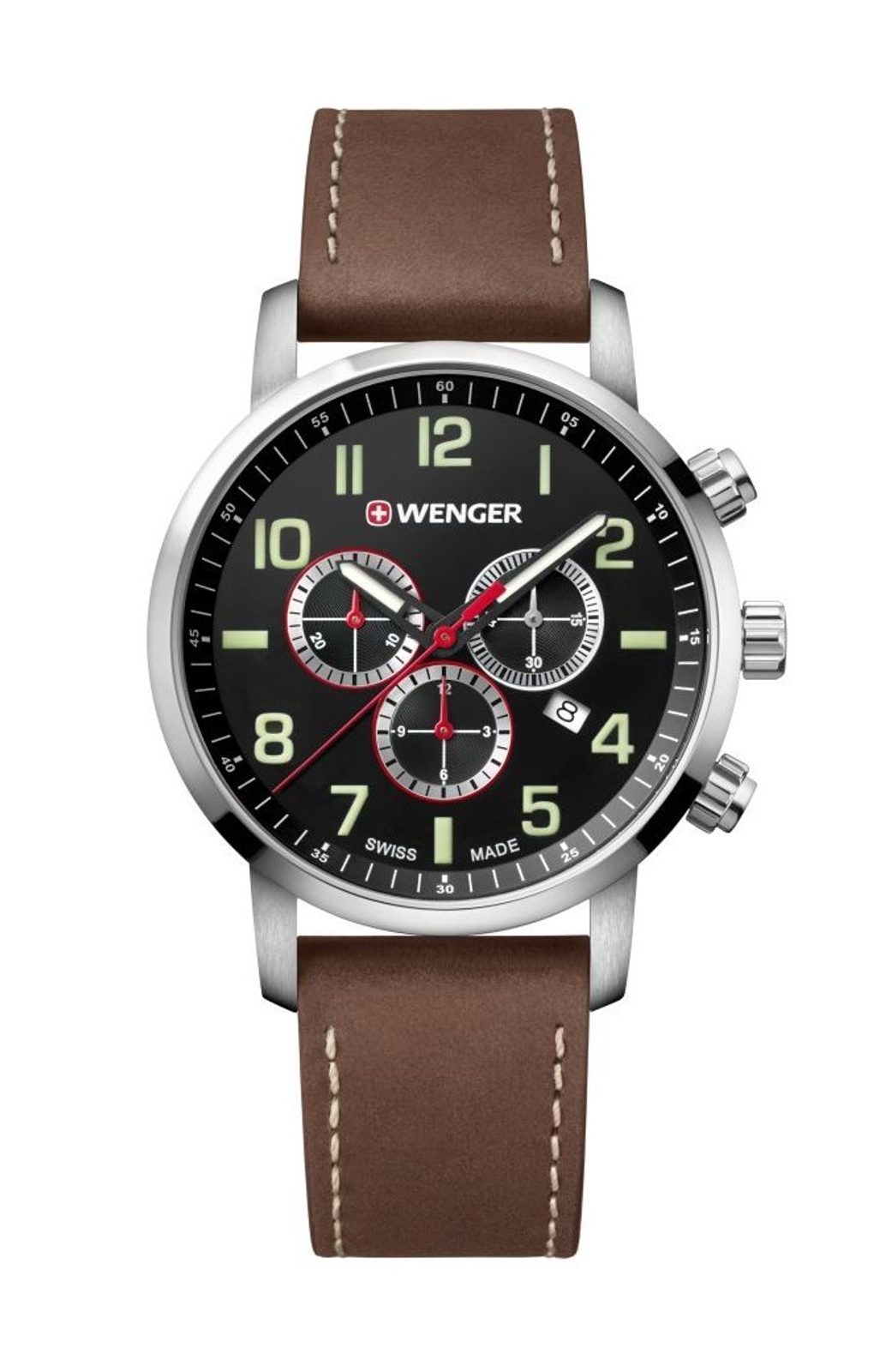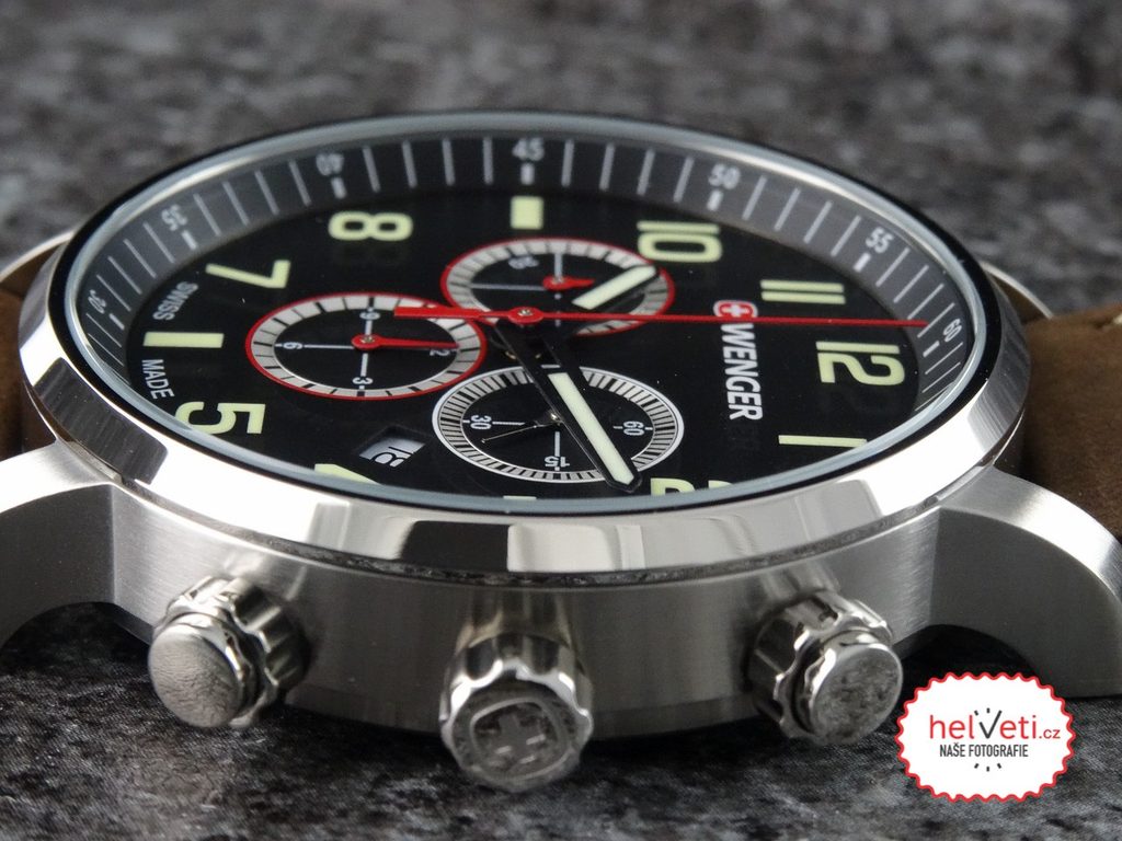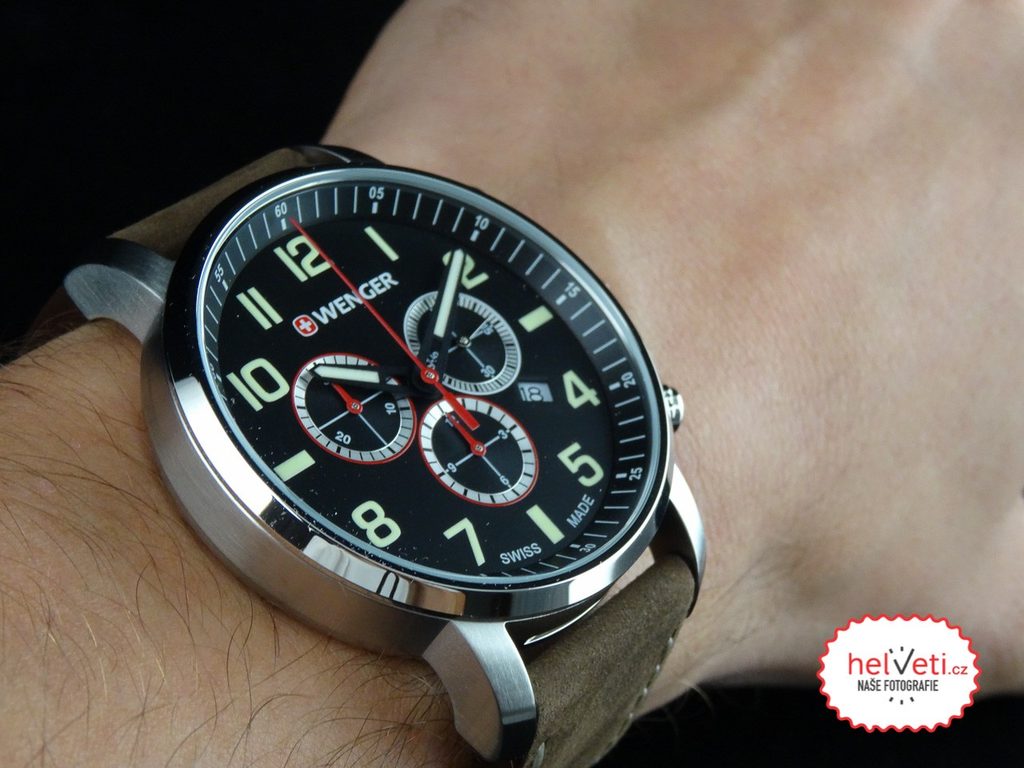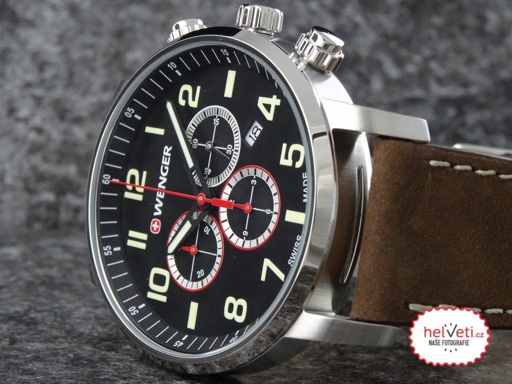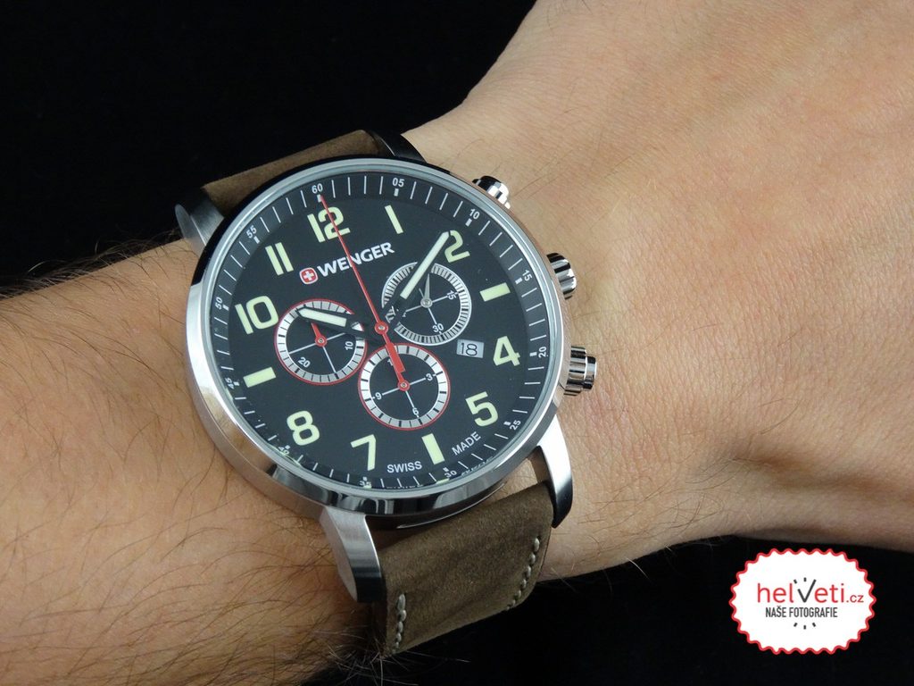 Model Wenger Attitude Chrono 01.1543.103 se dodává s kvalitním tlustým koženým řemínkem. Ciferník má podklad univerzální černé barvy. Hodinky jsou sportovně laděné, mimo jiné díky jejich vodotěsnosti 100 m, ale jsou vhodným doplňkem také k obleku, nebo slušnému oblečení.