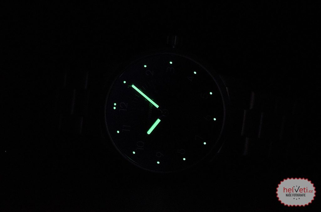 Přehlednému ciferníku dominuje konvexní číselník, který po bližším pohledu zaujme každého majitele těchto hodinek. Další zajímavostí tohoto modelu jsou luminiscenční body nad každým indexem, nad dvanáctkou pak body dva. Pouzdro hodinek je vyrobeno z nerezavé oceli s černou PVD úpravou a číselník je chráněn minerálním sklíčkem se safírovou úpravou. Skvělým doplňkem je signovaná korunka se Švýcarským křížem.