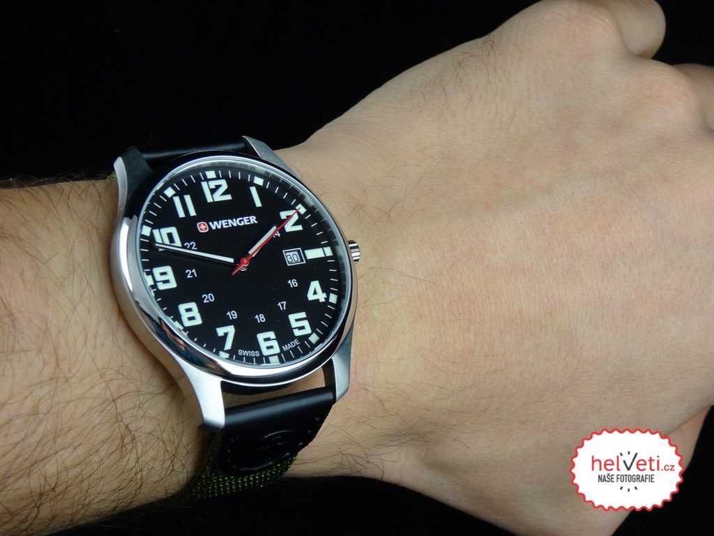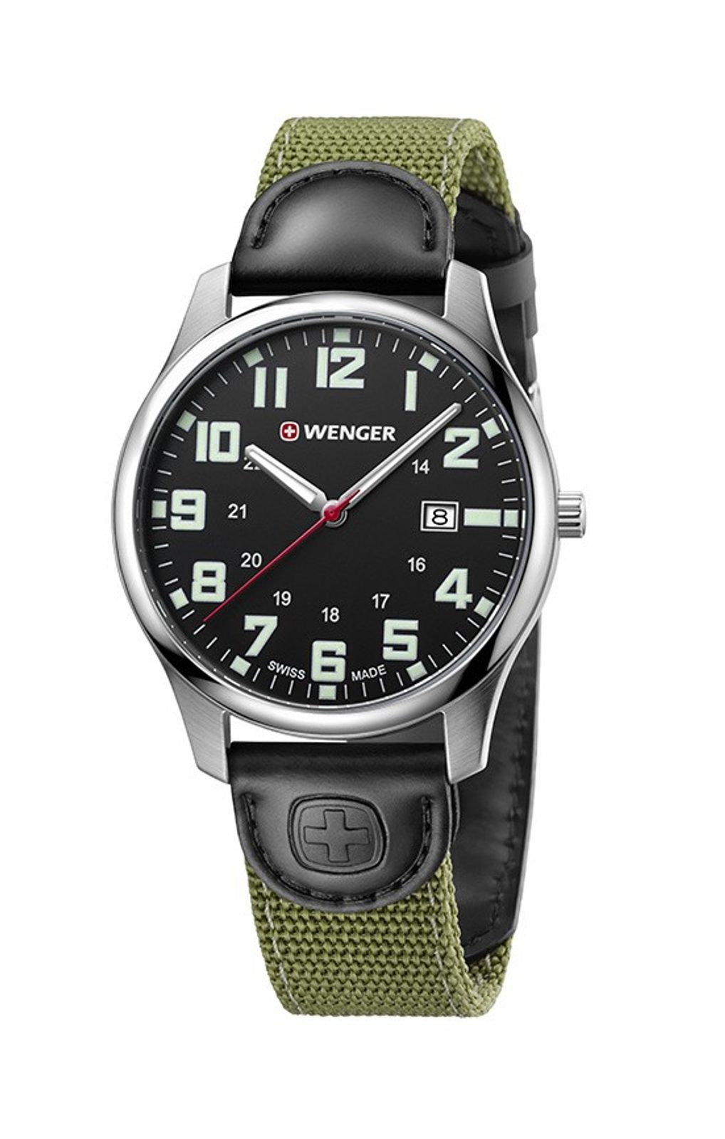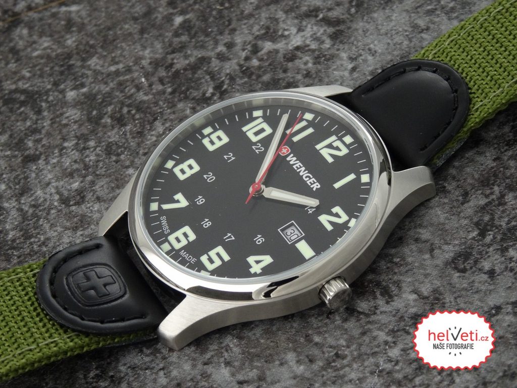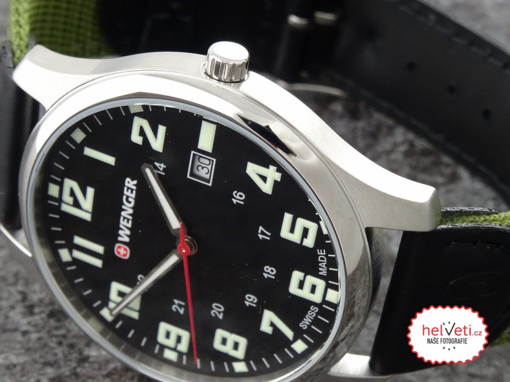Pánské hodinky Wenger City Active 01.1441.113 jsou podzimní novinkou roku 2016. Zaujmou Vás především řemínkem v kombinaci černé kůže zeleného a nylonu, což ladí s černým provedením ciferníku. Sklíčko je vyrobeno z minerálu se safírovou úpravou a pouzdro z oceli. Na třetí pozici se nachází ukazatel data. Model dále disponuje s vodotěsností 30 metrů.