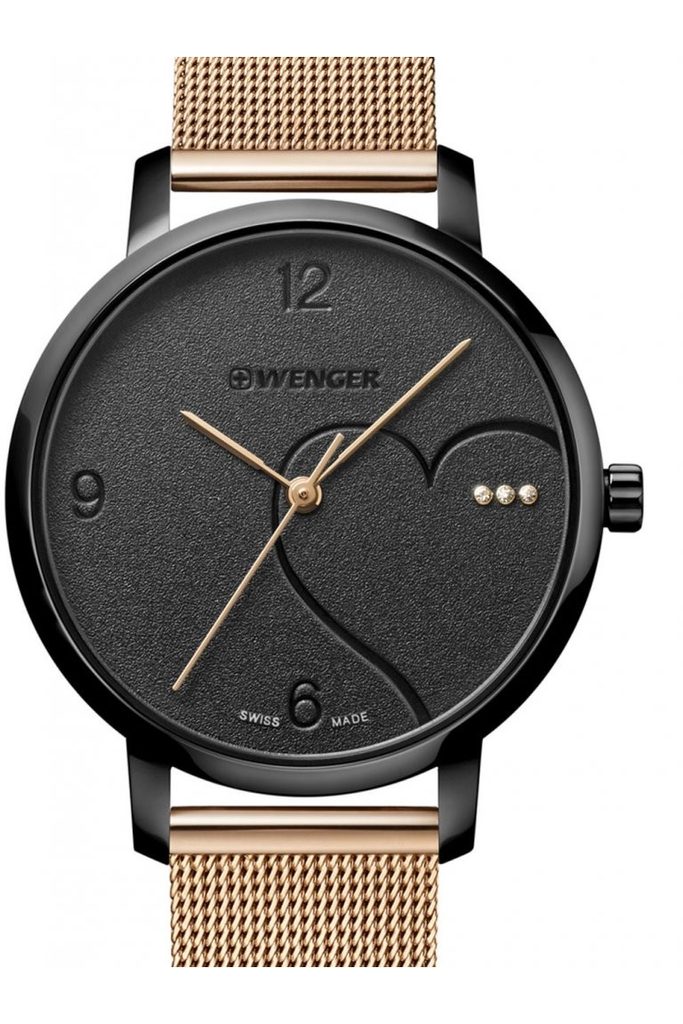 Dámské náramkové hodinky z nově představené modelové řady Metropolitan Donnissima. Hodinky Wenger Metropolitan Donnissima 01.1731.114 se hodí na každodenní nošení ale i do společnosti. Ciferník Vás na první pohled zaujme třemi Swarovski kamínky na pozici třetí hodiny. Hodinky disponují ocelovým pouzdrem a jemně tkaným mesh náramkem s PVD úpravou. Vodotěsnost tohoto modelu je 100m. V této modelové řadě oceníte minerální sklíčko potažené safírovým povlakem.