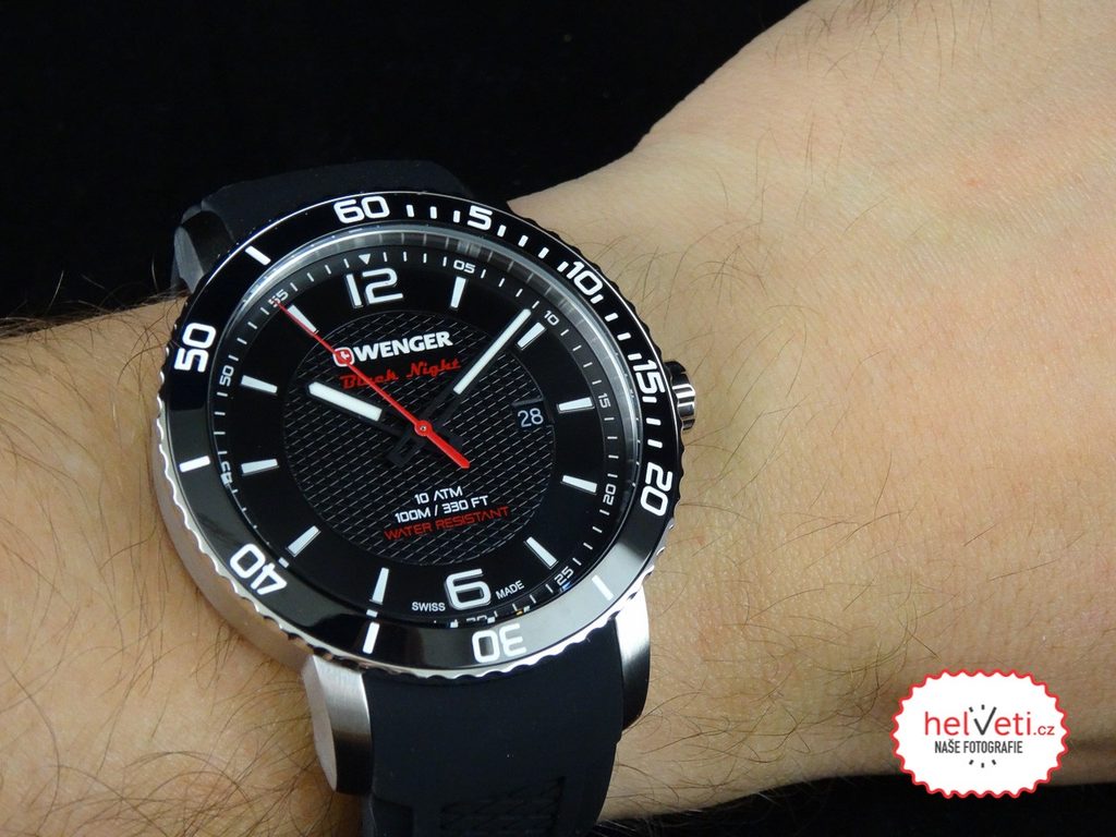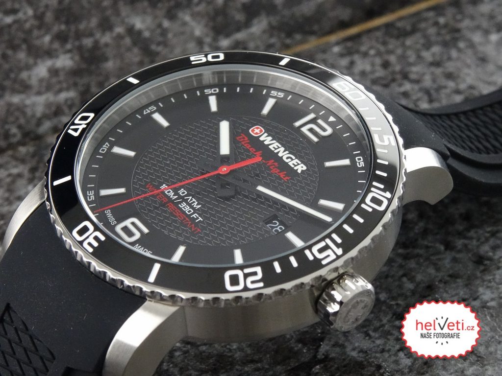 Hodinky z řady Wenger Roadster Black Night mají voděodolnost 100m. Ciferník, jenž je chráněn minerálním sklem se safírovou úpravou se pyšní velmi elegantním, přehledným provedením. Po obvodu ciferníku se nachází jednosměrně otočná černá luneta, která vyrobena z odolného titankarbidu. Na třetí pozici se nachází ukazatel data.