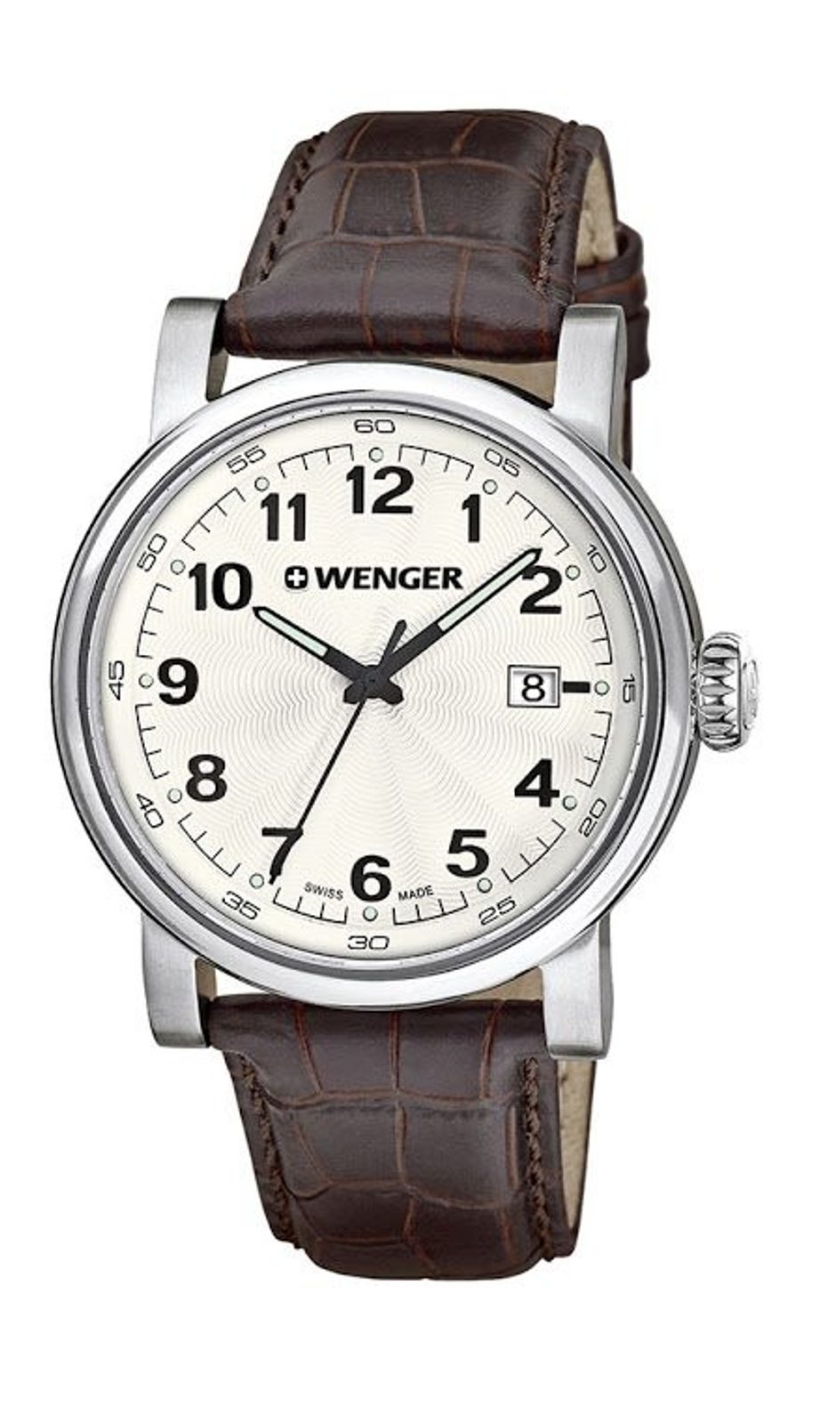 Hodinky Wenger Urban Classic 01.1041.114 navazují na model Wenger Urban Classic 01.1041.101. Liší se posunutím loga Wenger níže, přidáním číslice 12 na ciferník hodinek a odebráním vojenského času. Hodinky jsou velmi elegantní a jejich decentní provedení se tak hodí k obleku, ale také pro běžné nošení. Kombinace hnědého koženého pásku s krokodýlím vzorem a leštěné ocele se velmi povedla. Hodinky disponují minerálním sklíčkem se safírovou vrstvou, které chrání bílý ciferník a švýcarský strojek Ronda 515. Na ciferníku najdeme na třetí pozici ukazatel data.