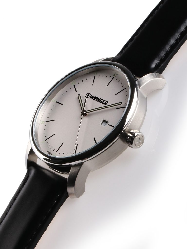 Společensky laděné hodinky Wenger Urban Classic 01.1741.109 mají přehledný ciferník, který obsahuje ukazatel data. Hodinky z řady Wenger Urban Classic mají voděodolnost 100m a minerální sklíčko se safírovou úpravou. Pouzdro hodinek je vyrobeno z oceli, řemínek je kožený. Hodinky mají švýcarský strojek Ronda, který pohání baterie.