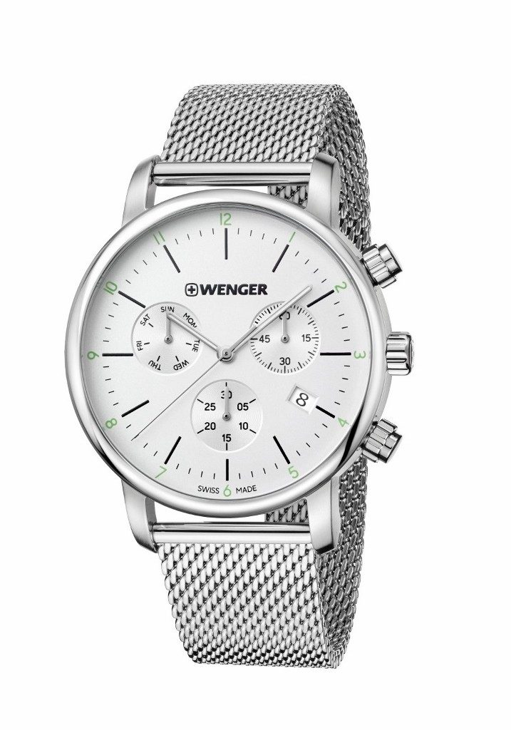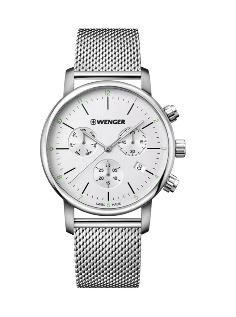Společensky laděné hodinky Wenger Urban Classic Chrono 01.1743.106 mají přehledný ciferník, který obsahuje ukazatel data, dne v týdnu a stopky. Hodinky z řady Wenger Urban Classic mají voděodolnost 100m a minerální sklíčko se safírovou úpravou. Pouzdro a tah hodinek je vyrobeno z oceli. Hodinky mají švýcarský strojek Ronda Z60, který pohání baterie.