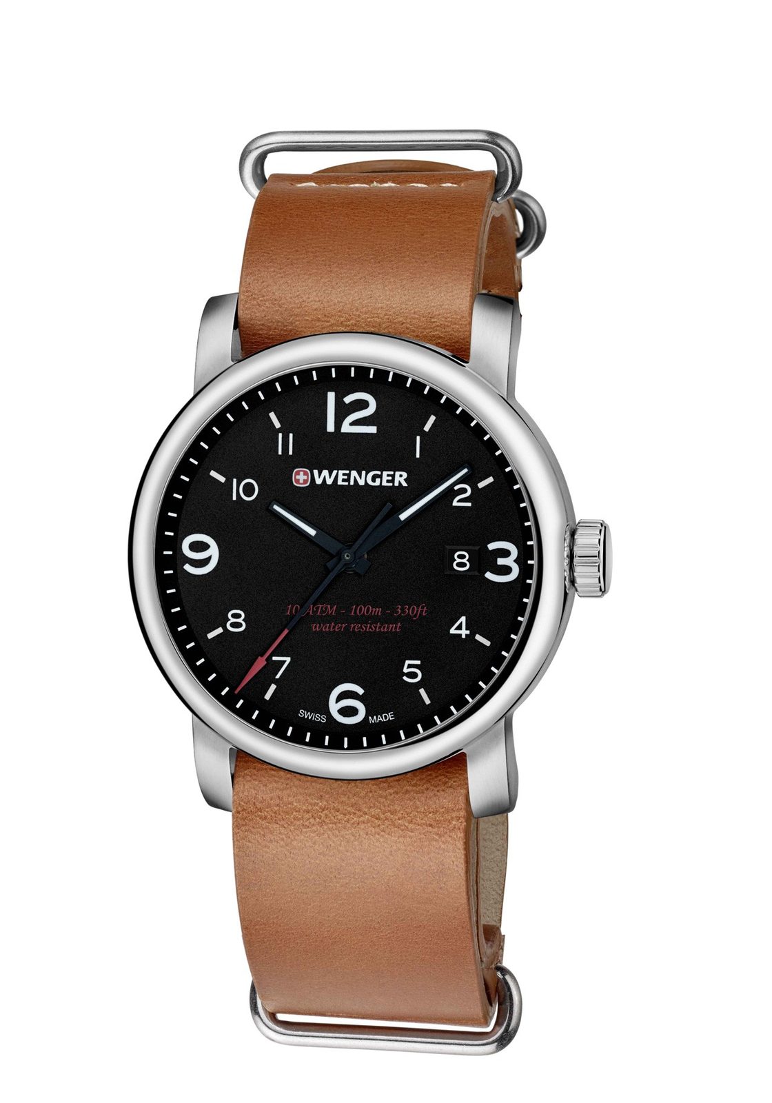 Sportovně laděné hodinky Wenger Urban Metropolitan 01.1041.136 mají přehledný ciferník v černé barvě s datumovkou. Pouzdro je ocelové. Hodinky z řady Wenger Urban Metropolitan mají voděodolnost 100m a minerální sklíčko se safírovou úpravou. Kožený řemínek v hnědé barvě a provedení NATO ladí s černou barvou ciferníku. Pouzdro hodinek je ocelové a bytelné. Hodinky mají švýcarský strojek RONDA 515, který pohání baterie.